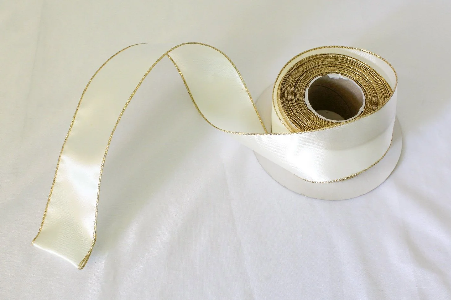 Satin Wired Ribbon with Gold Trim